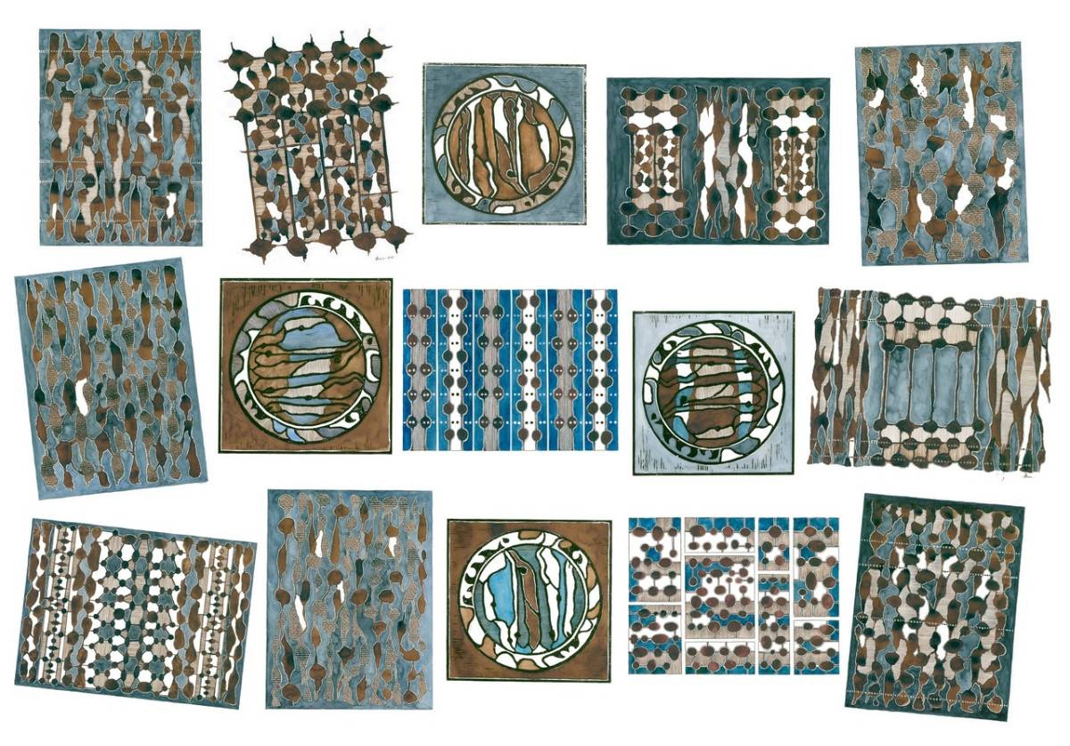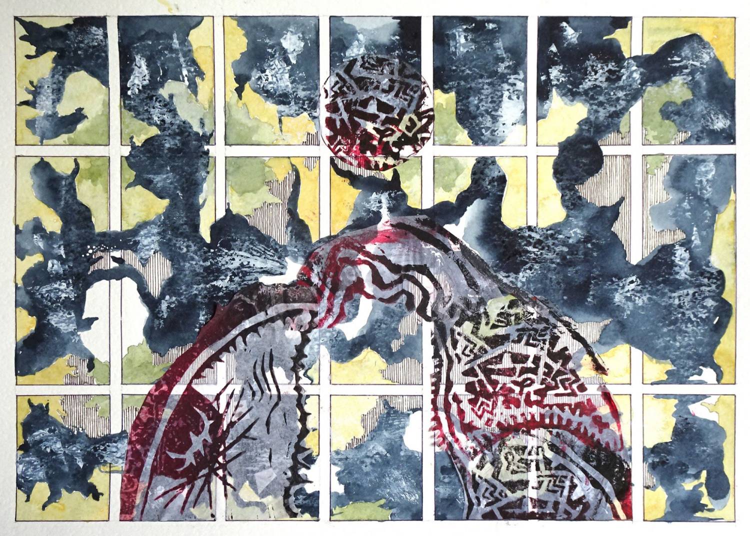 Plus géométrique, plus construite, elle fait toujours appel à l'aquarelle, à l'encre, au brou de noix.