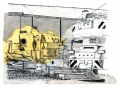 Avec l'aide de Margaux et Léo, en stage sur le site de St-Pierre-des-Corps, j'ai pu présenter mes derniers dessins du chantier du Point Haut : reproductions noir et blanc et montages avec dessins couleur. Voici quelques nouveaux dessins présentés à l'occasion :